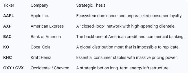 Buffett’s portfolio is highly concentrated. He does not believe in “diworsification.” He bets heavily on his highest convictions.